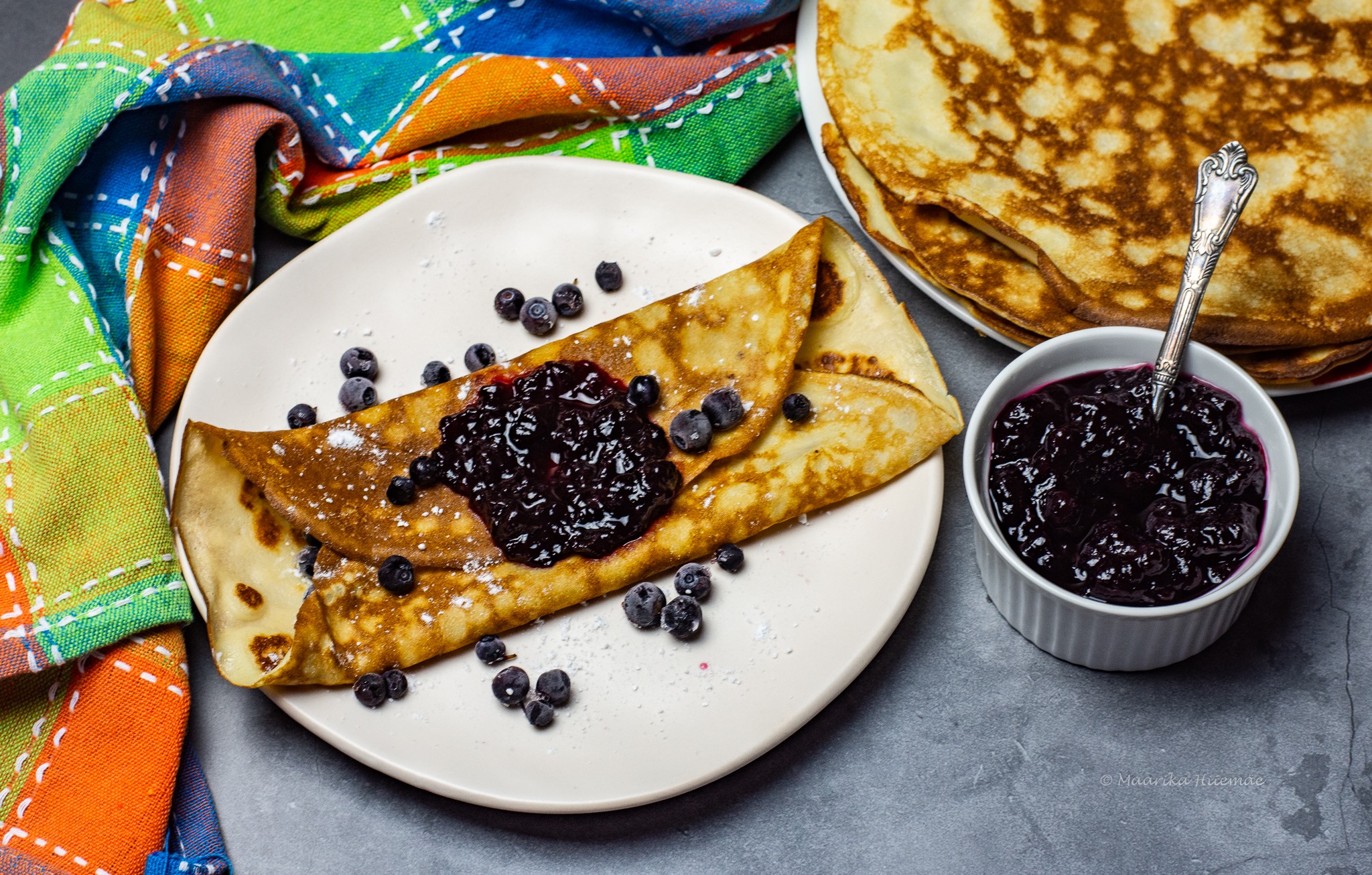 - Klopi muna mee, vanilje ja näpuotsatäie soolaga. Lisa sulatatud või ja pool antud piimakogusest (ülejäänud piim joo pärast kookide kõrvale).Lõpuks lisa ka jahu.Sega kuni taigen on ilus ühtlane.Lase 10-15 minutit taignal seista, et jahu paisuks.Prae koogid.Serveeri moosi ja külma piimaga.