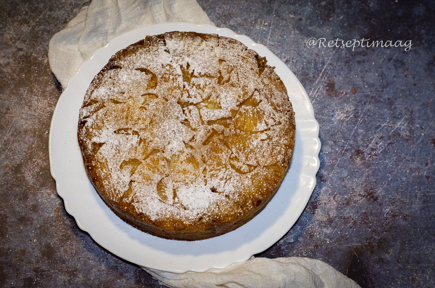 - Kalla tainas vormi ananassi peale ja küpseta alumisel tasemel umbes 35-45 minutit (kuna ahjud on erinevad, siis hoia koogil silma peal.